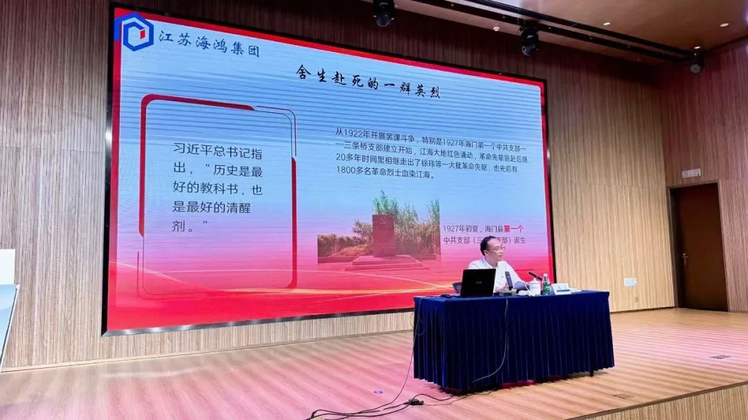 会议最后,崔勇为全体党员干部讲授了一堂生动的廉政党课。他带领大家回顾了中共海门地方史中关于作风建设的典型案例,并结合《习近平关于加强党的作风建设论述摘编》的重要论述,从理论高度系统解读了新时代加强作风建设的核心要义和实践要求。他强调,全体党员干部将作风建设成果转化为发展动力,以更加昂扬的斗志、更加务实的作风、更加有力的举措推动集团高质量发展,用实际行动践行初心使命。